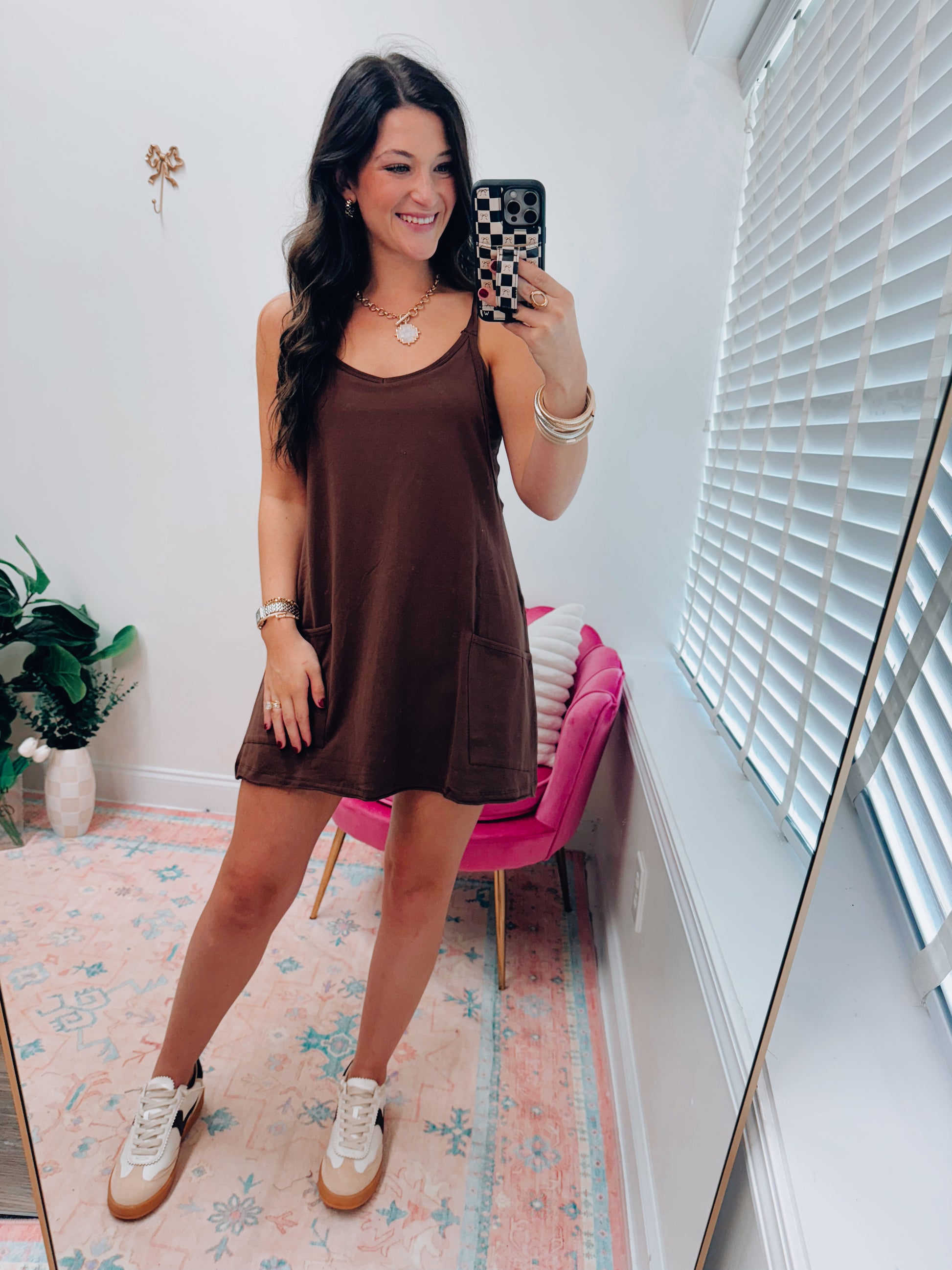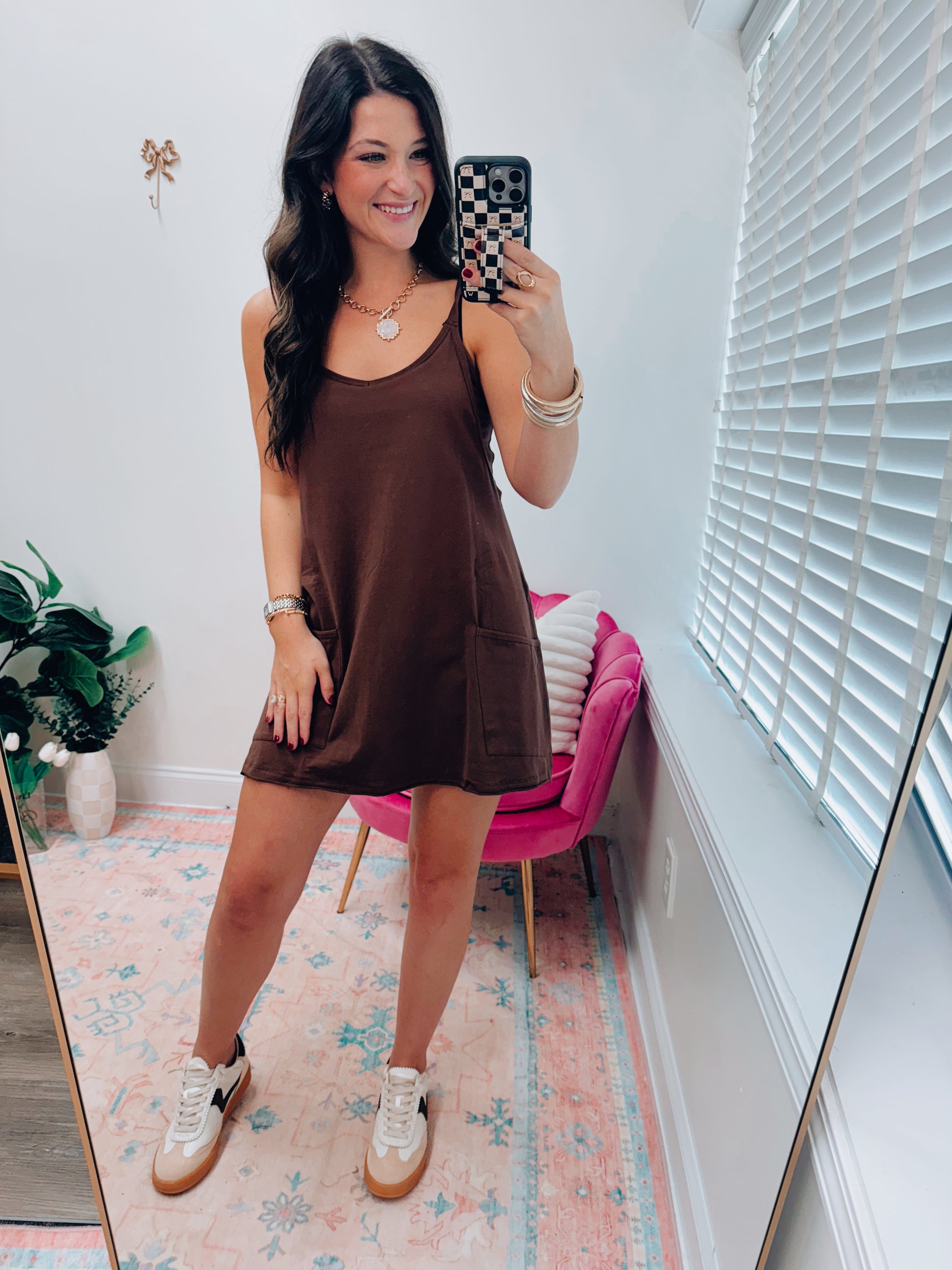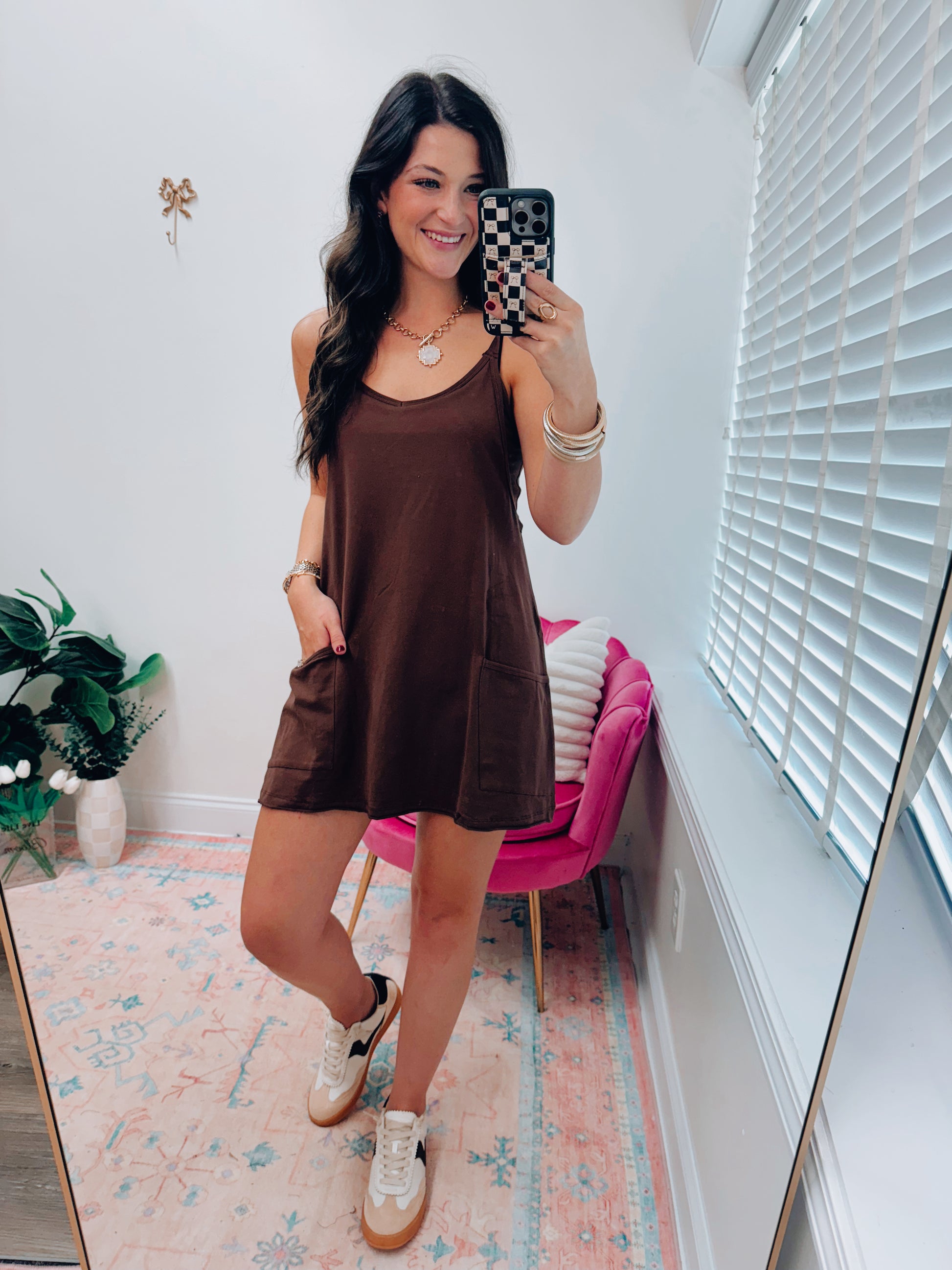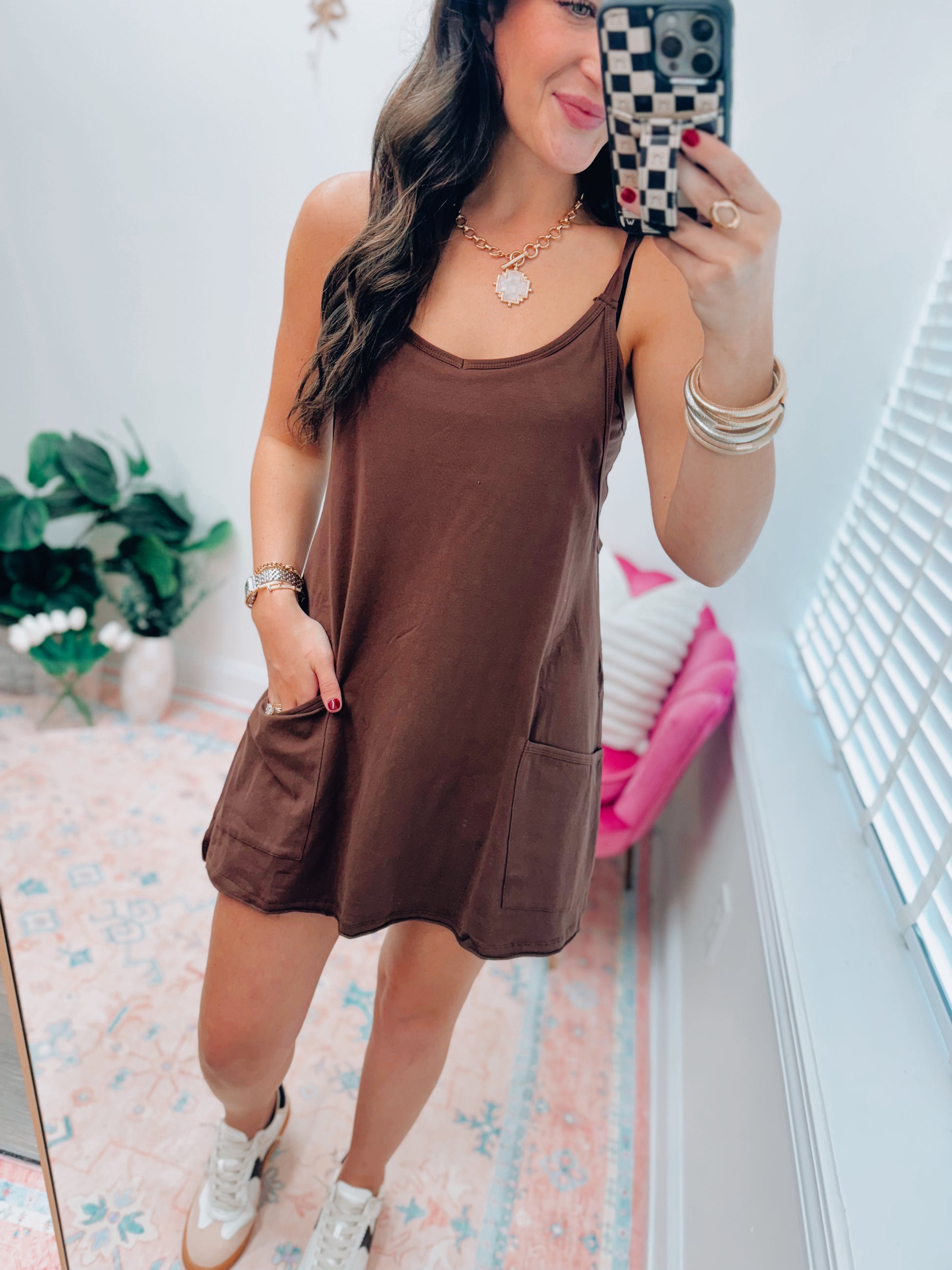Chocolate Front Pocket Romper Dress