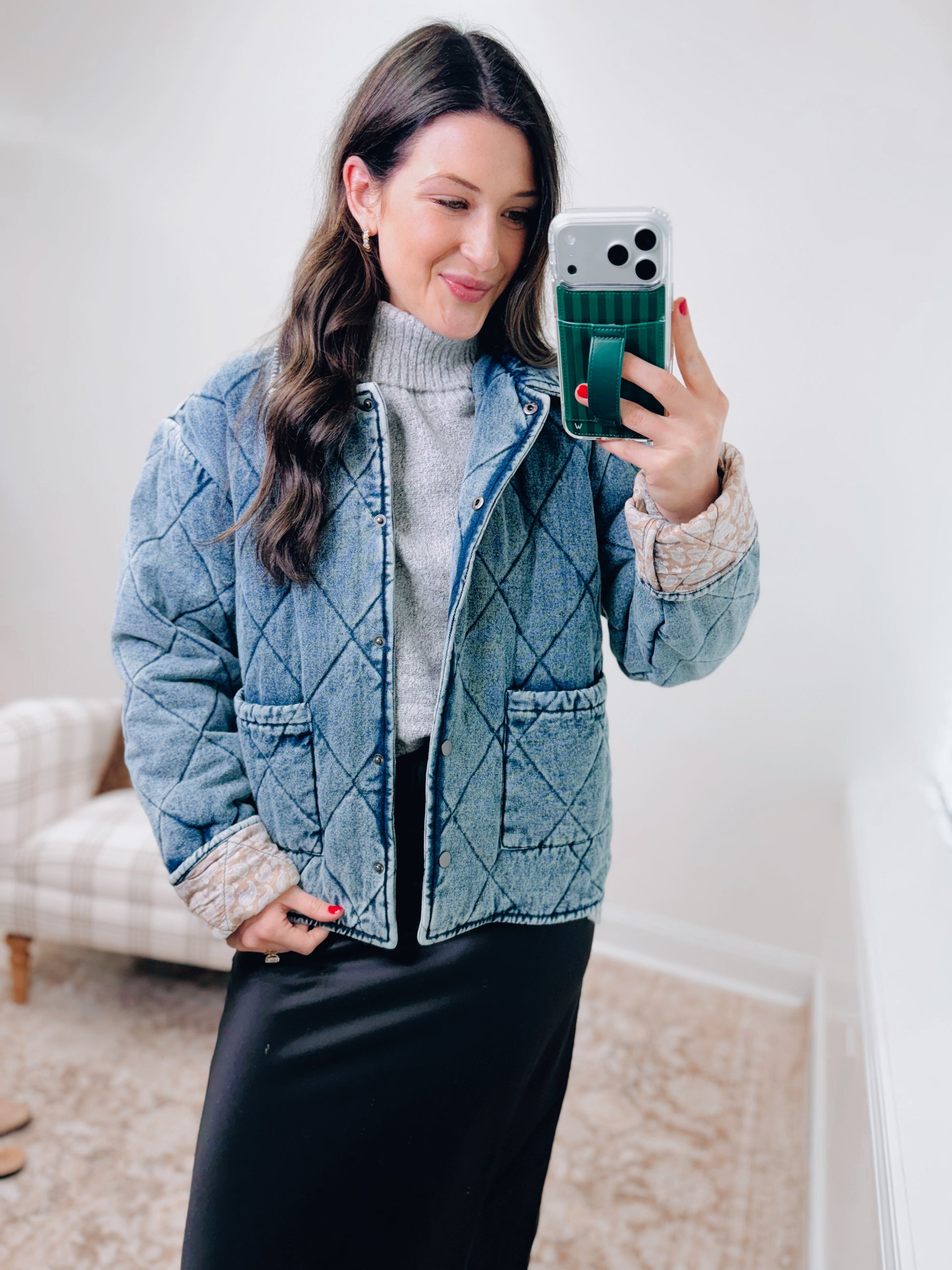 Contrast Lining Quilted Padding Denim Jacket