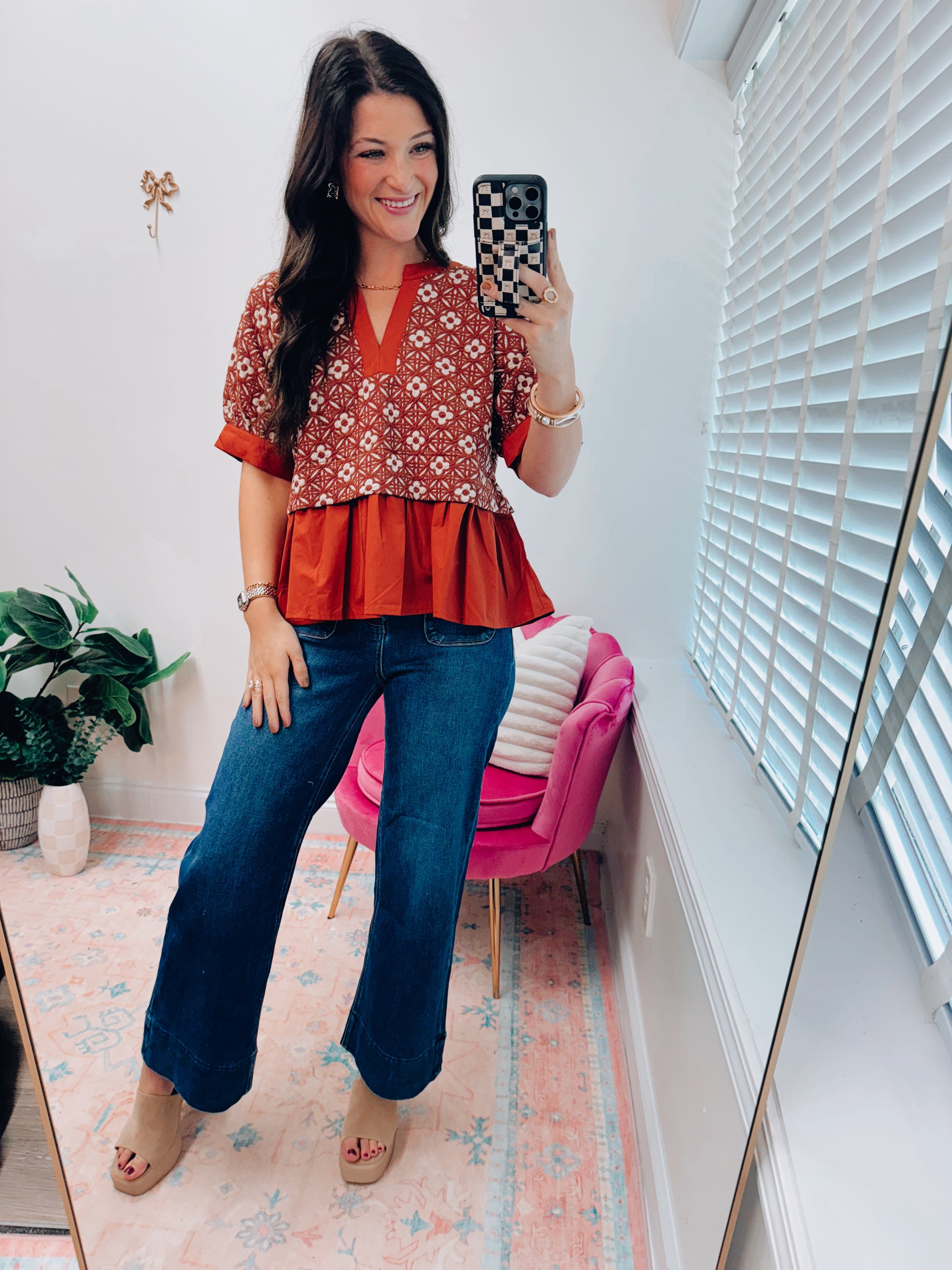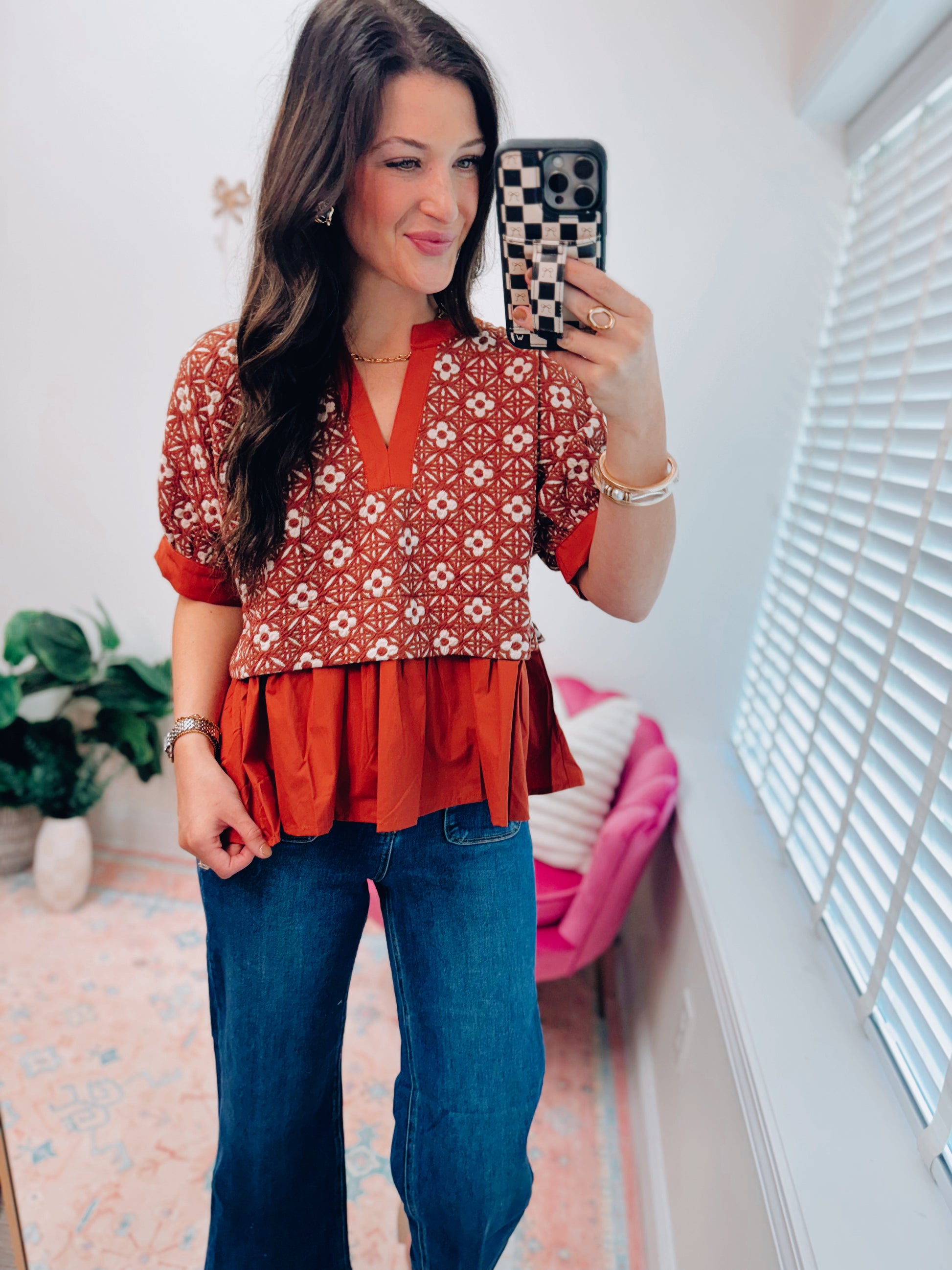 CURVY Darcy Floral Mix Media Top - Rust