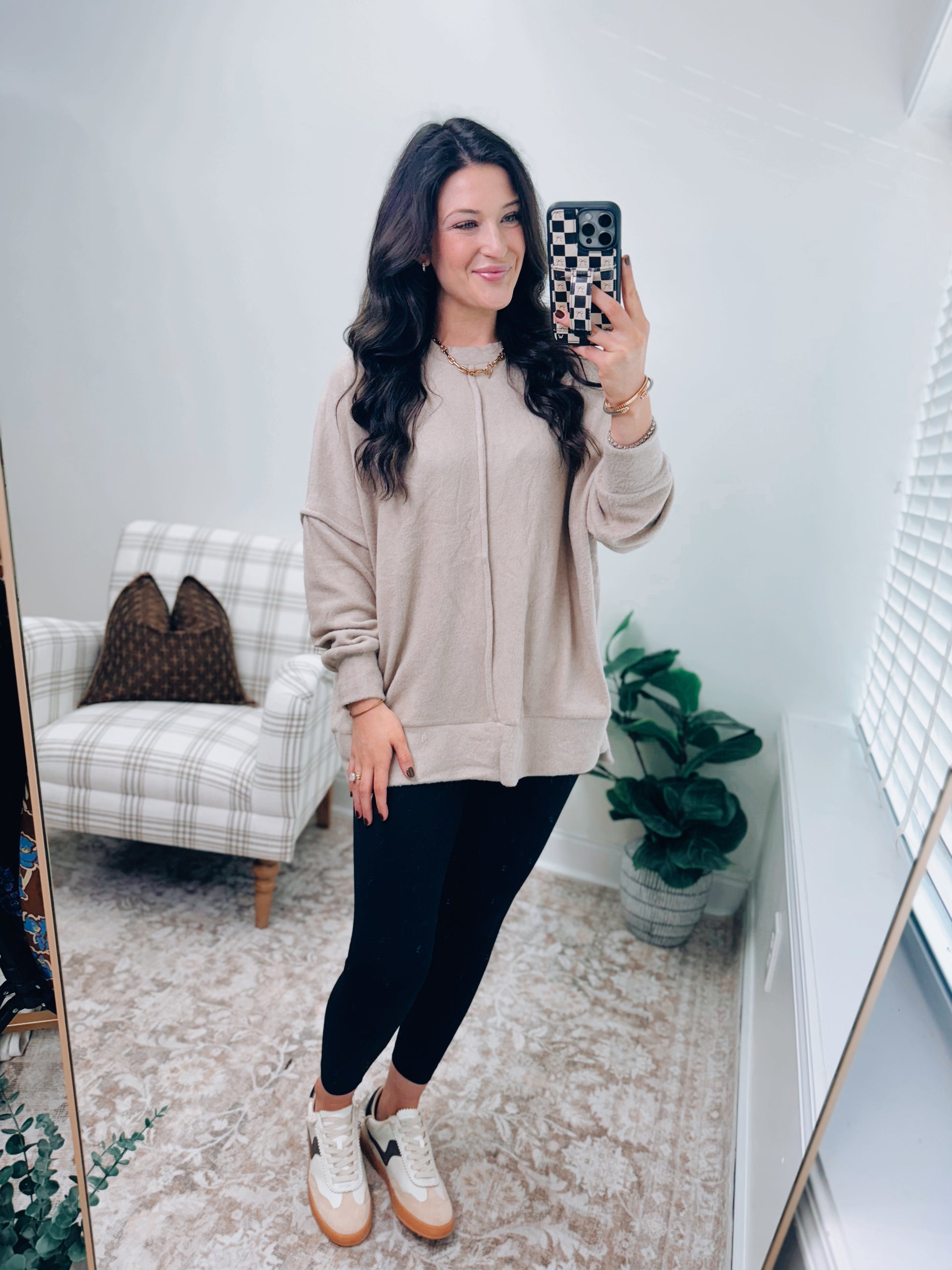 CURVY | DOORBUSTER Oversized Front Seam Brushed Sweater - Ash Mocha