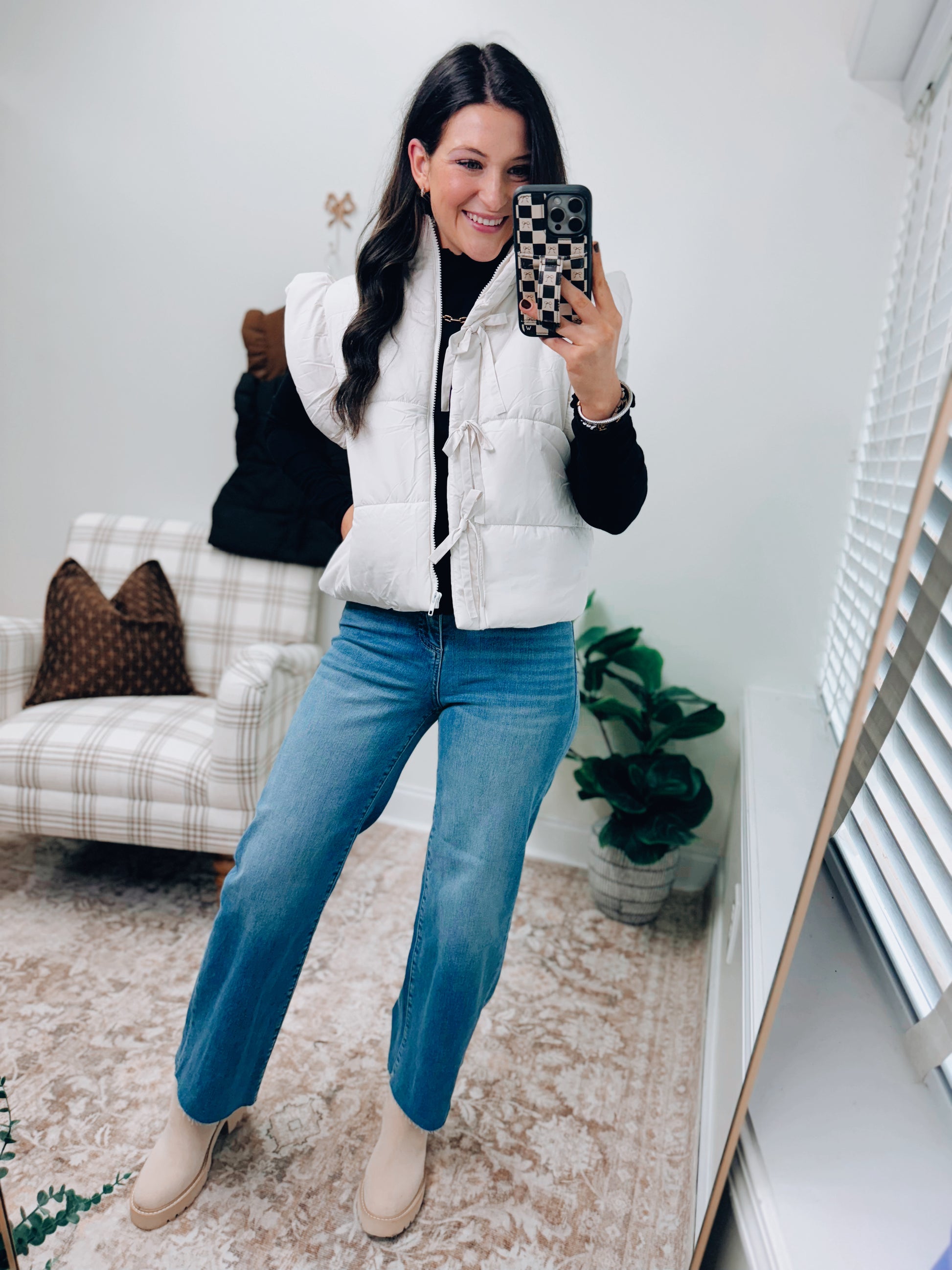 DOORBUSTER Flutter Sleeve Bow Puffer Vest - Black
