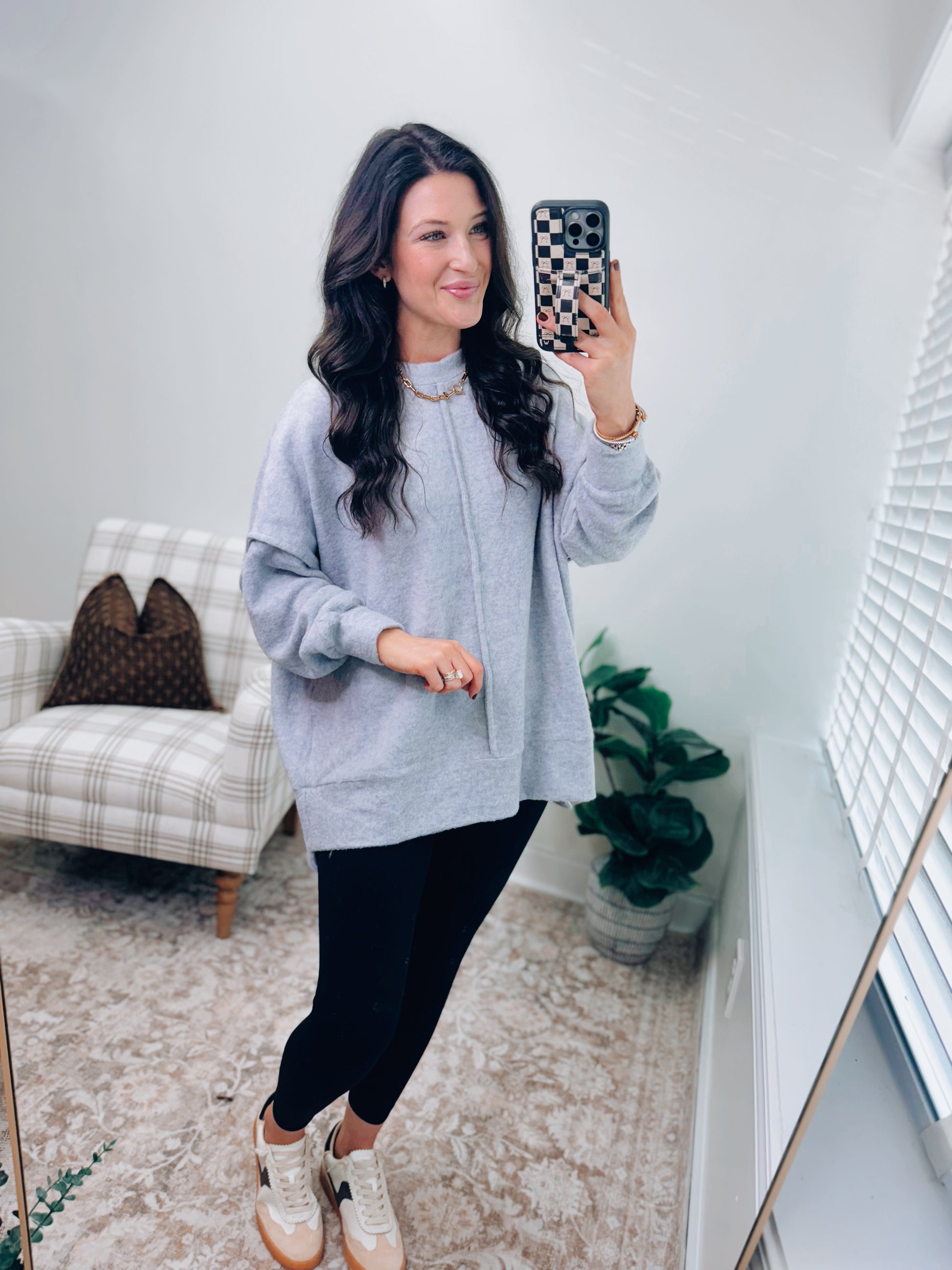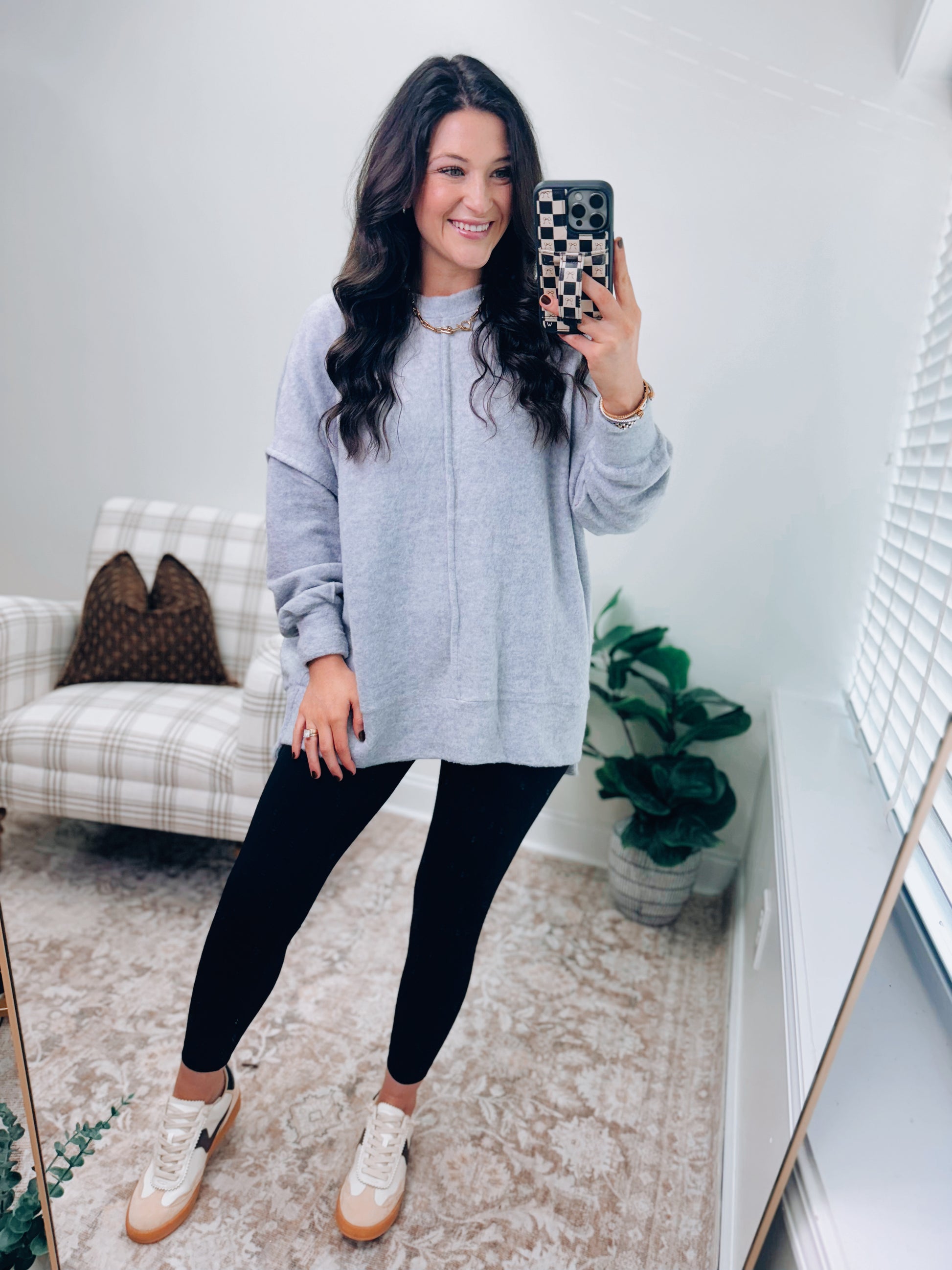 DOORBUSTER Oversized Front Seam Brushed Sweater - Gray