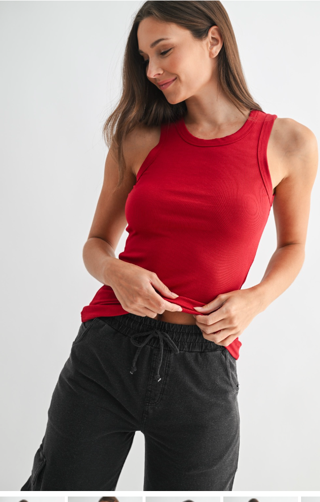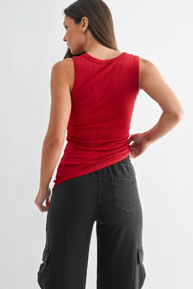 Essential Micro-Ribbed Athleisure Tank Top - Garnet