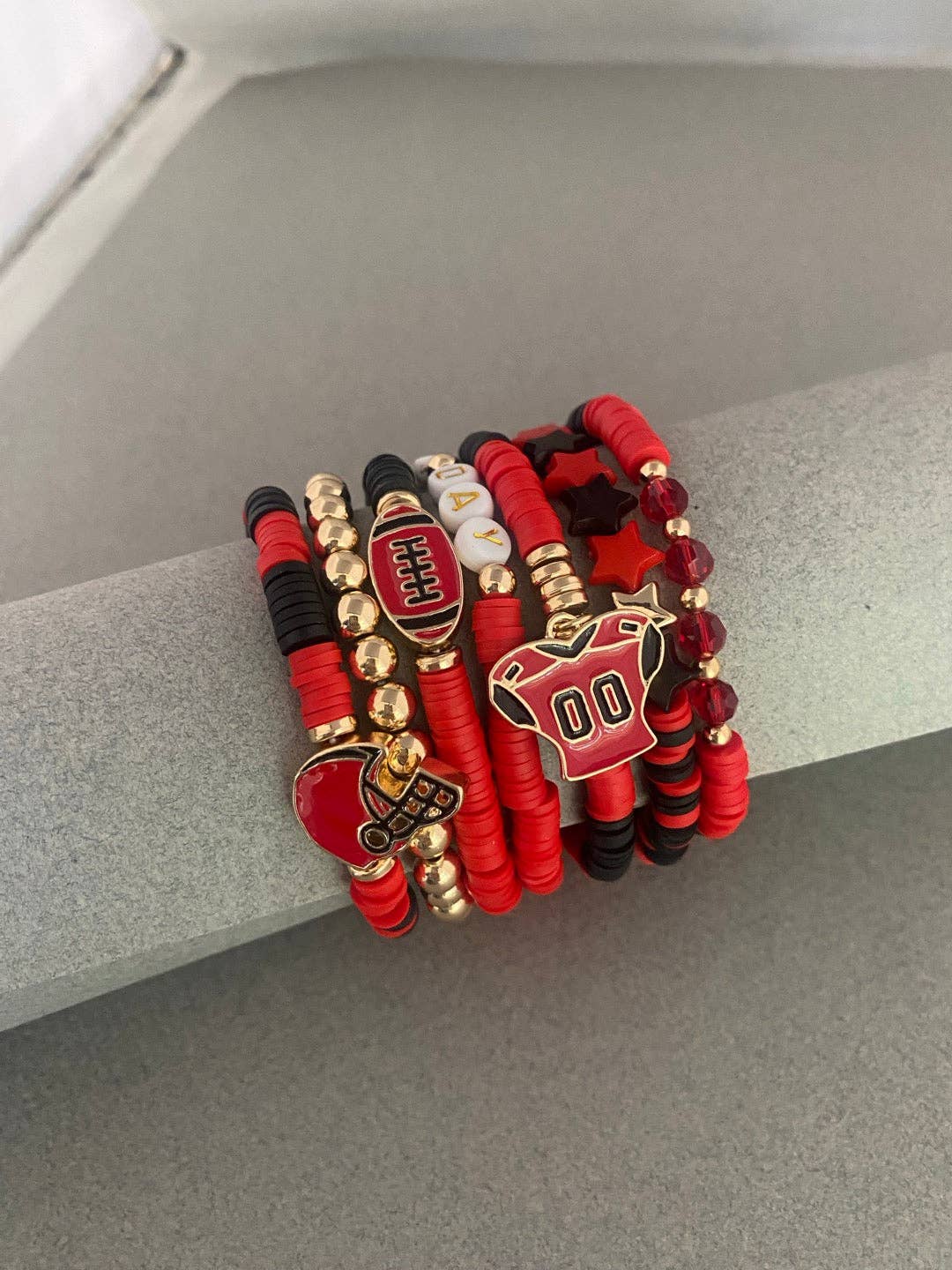 Gameday Red and Black Set of 7 Football Stretch Bracelets