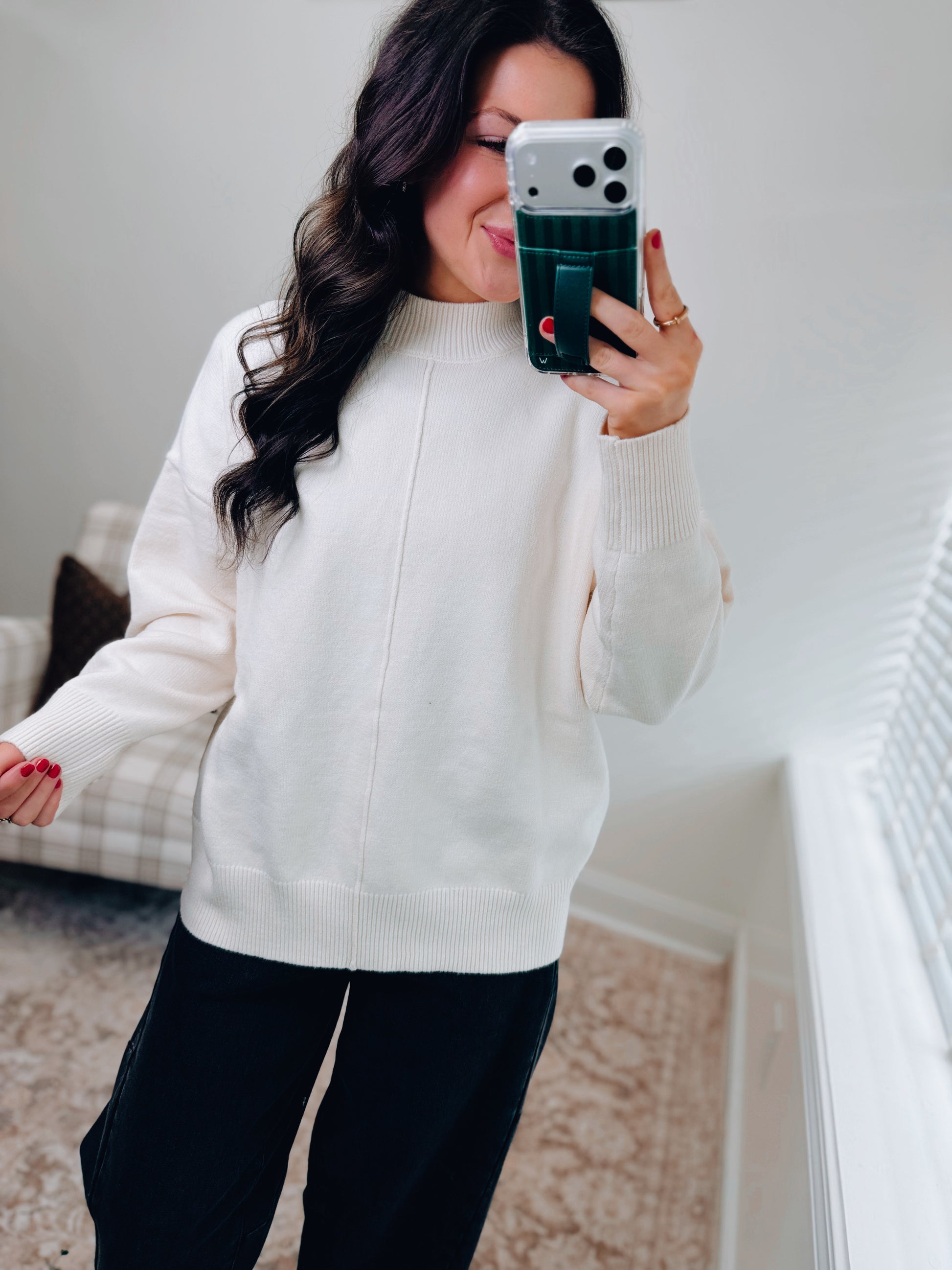 Ivory Ribbed Mock Front Seam Sweater