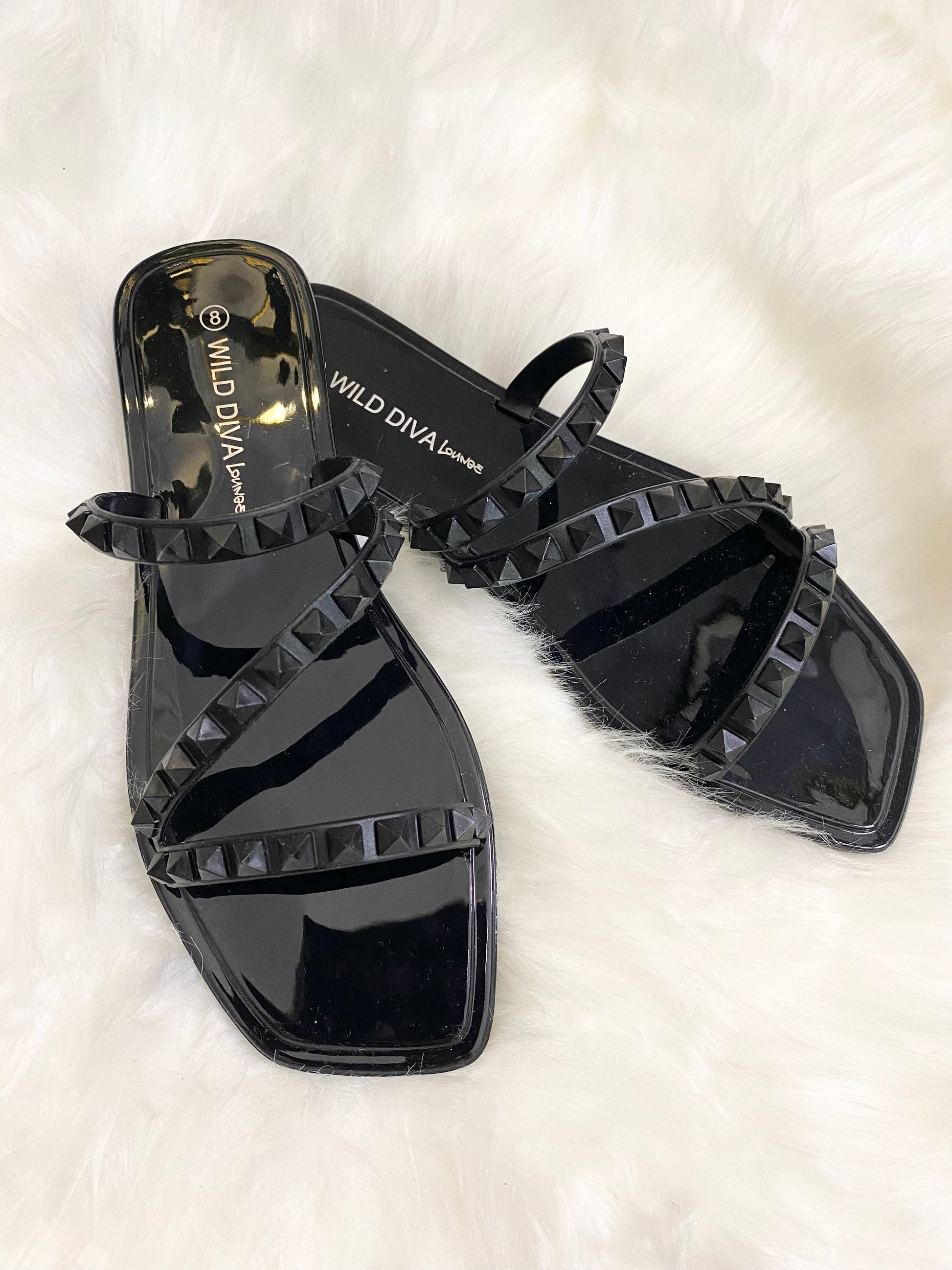 Black Jaycee Studded Z Strap Flat Beach Sandals