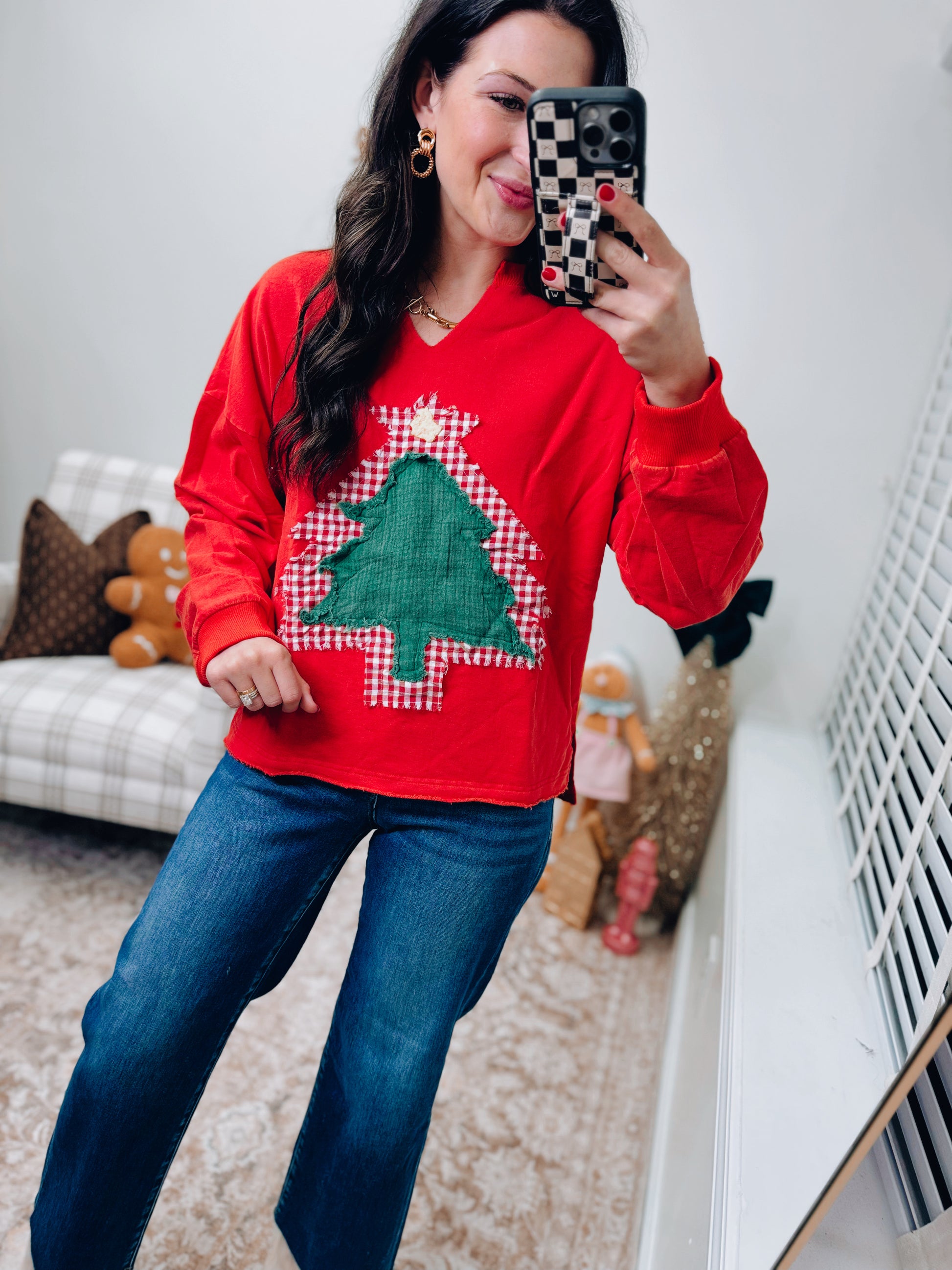 Mineral Washed Tree Patch French Terry Top