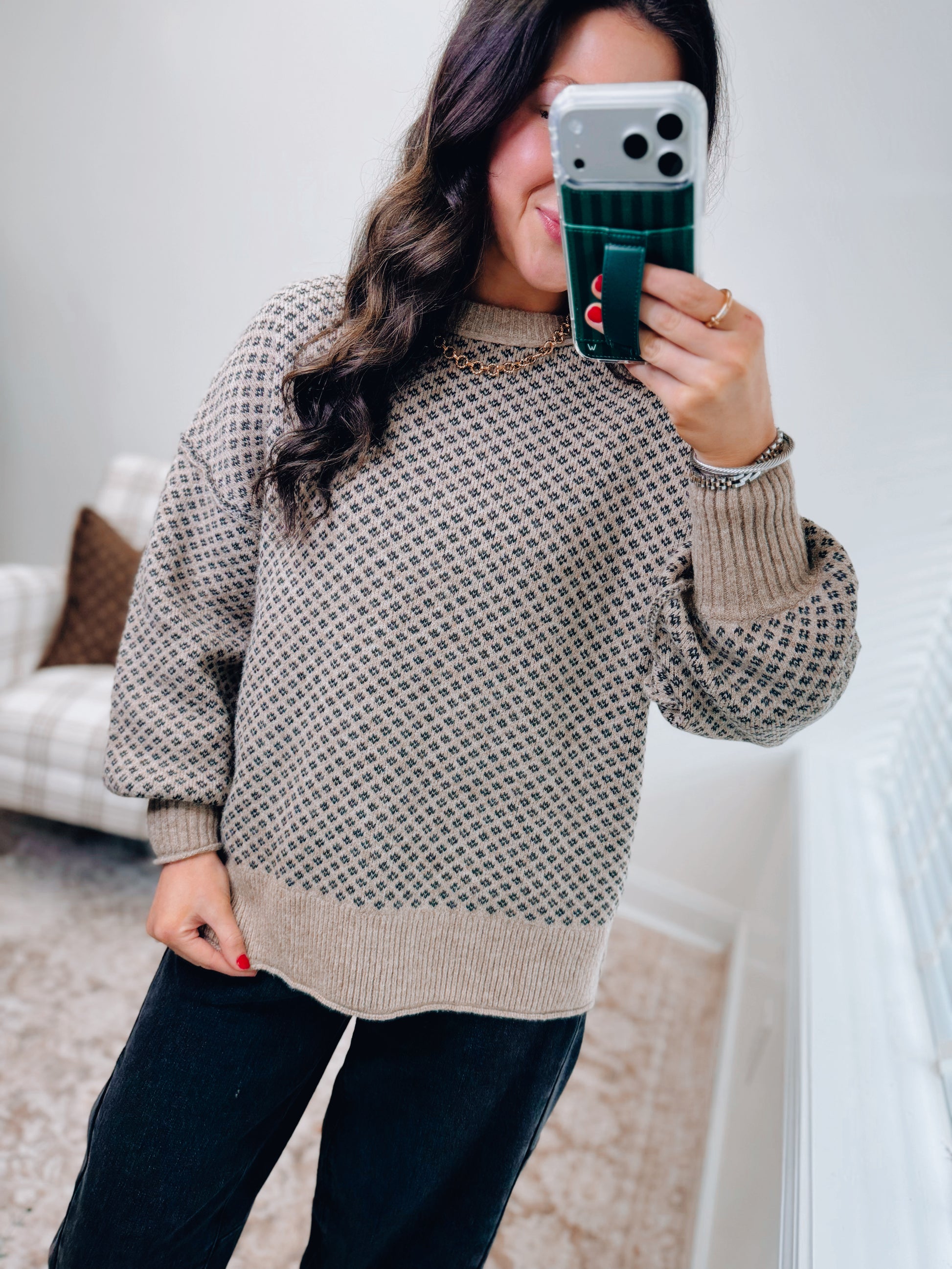 Mini Jacquard Taupe Knit Sweater