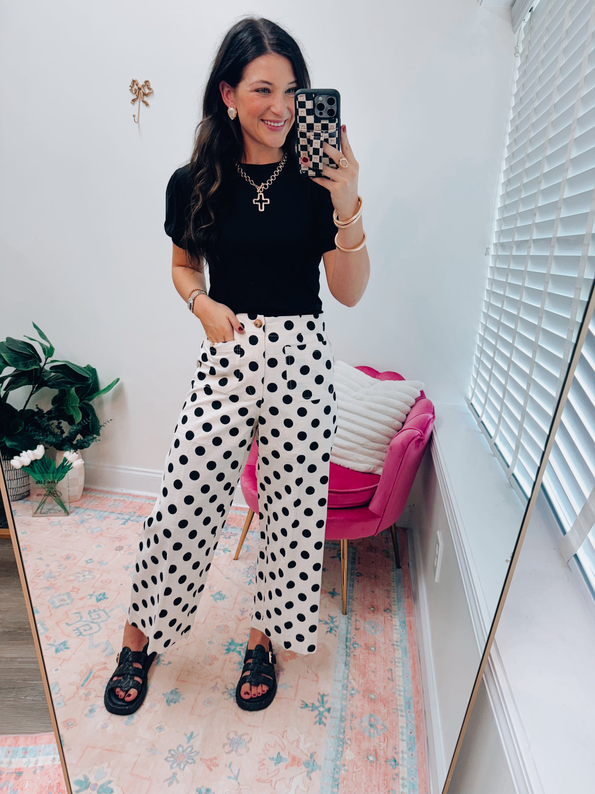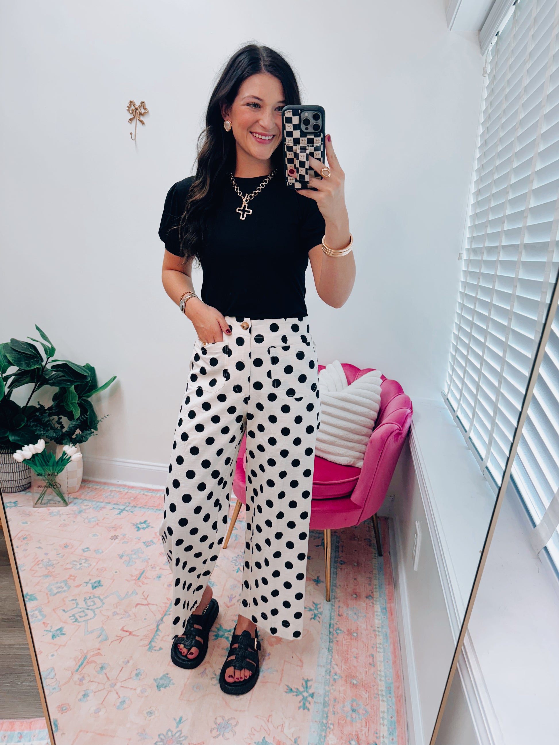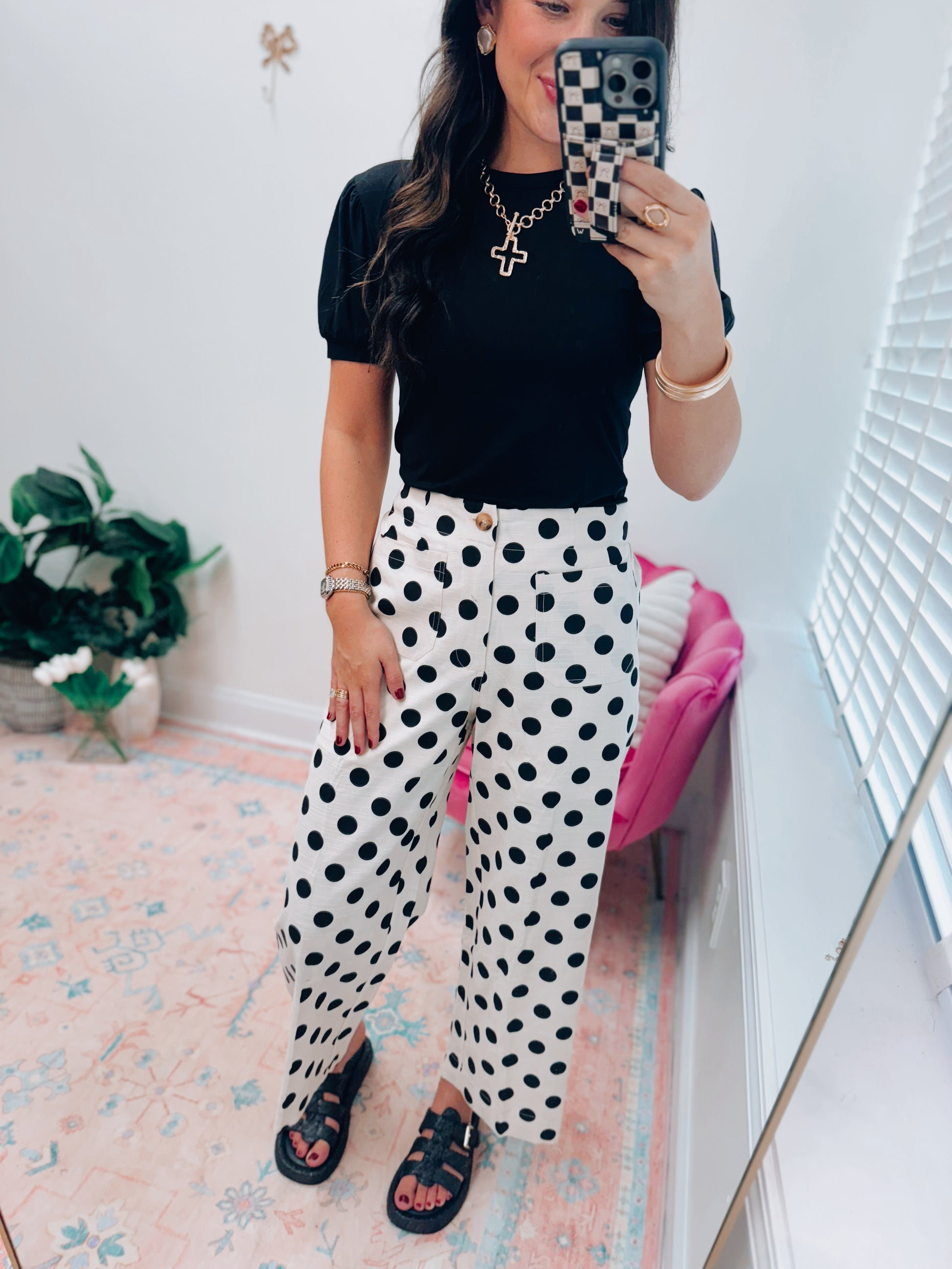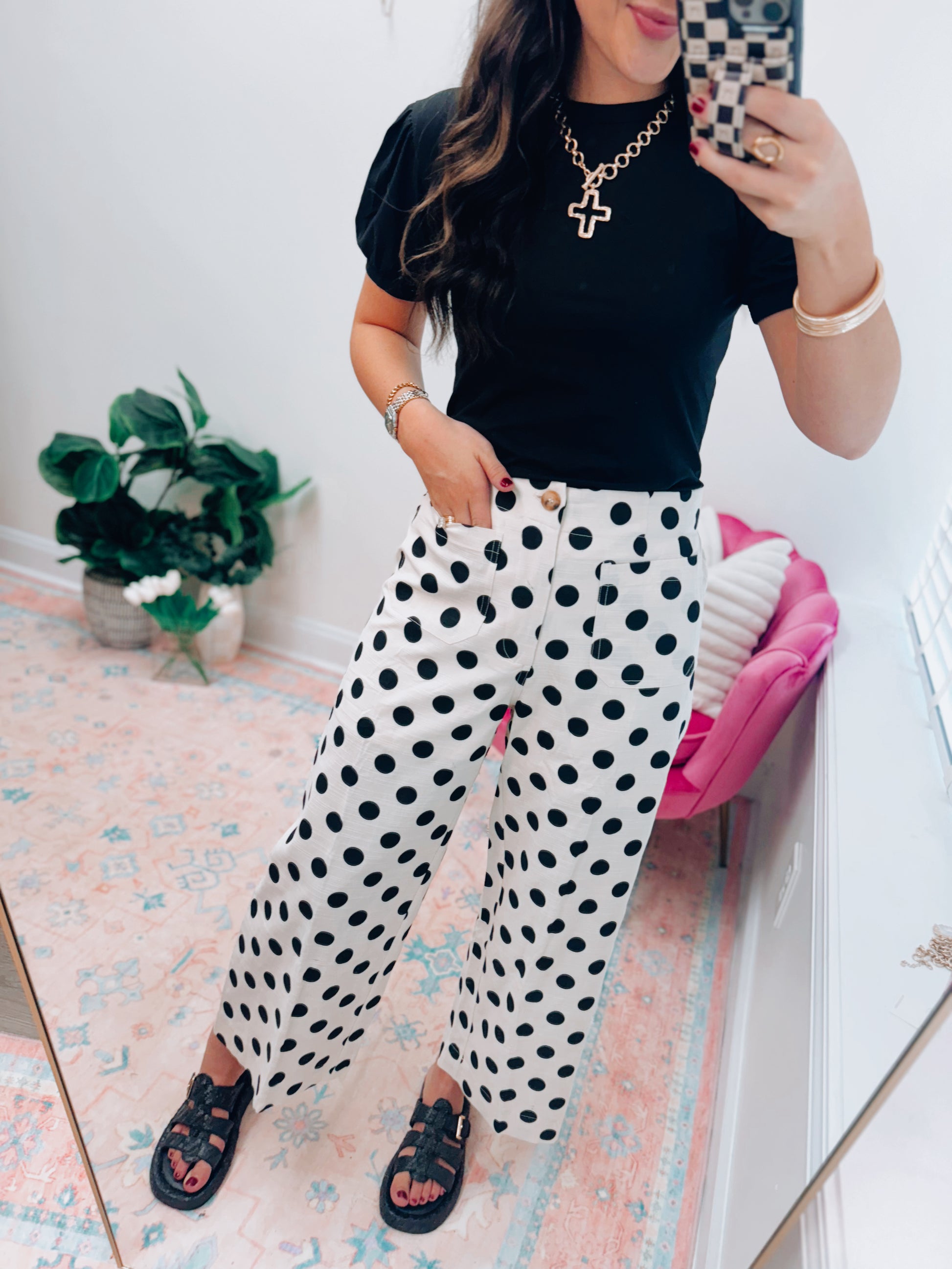 Polka Dot Linen Front Pocket Pants