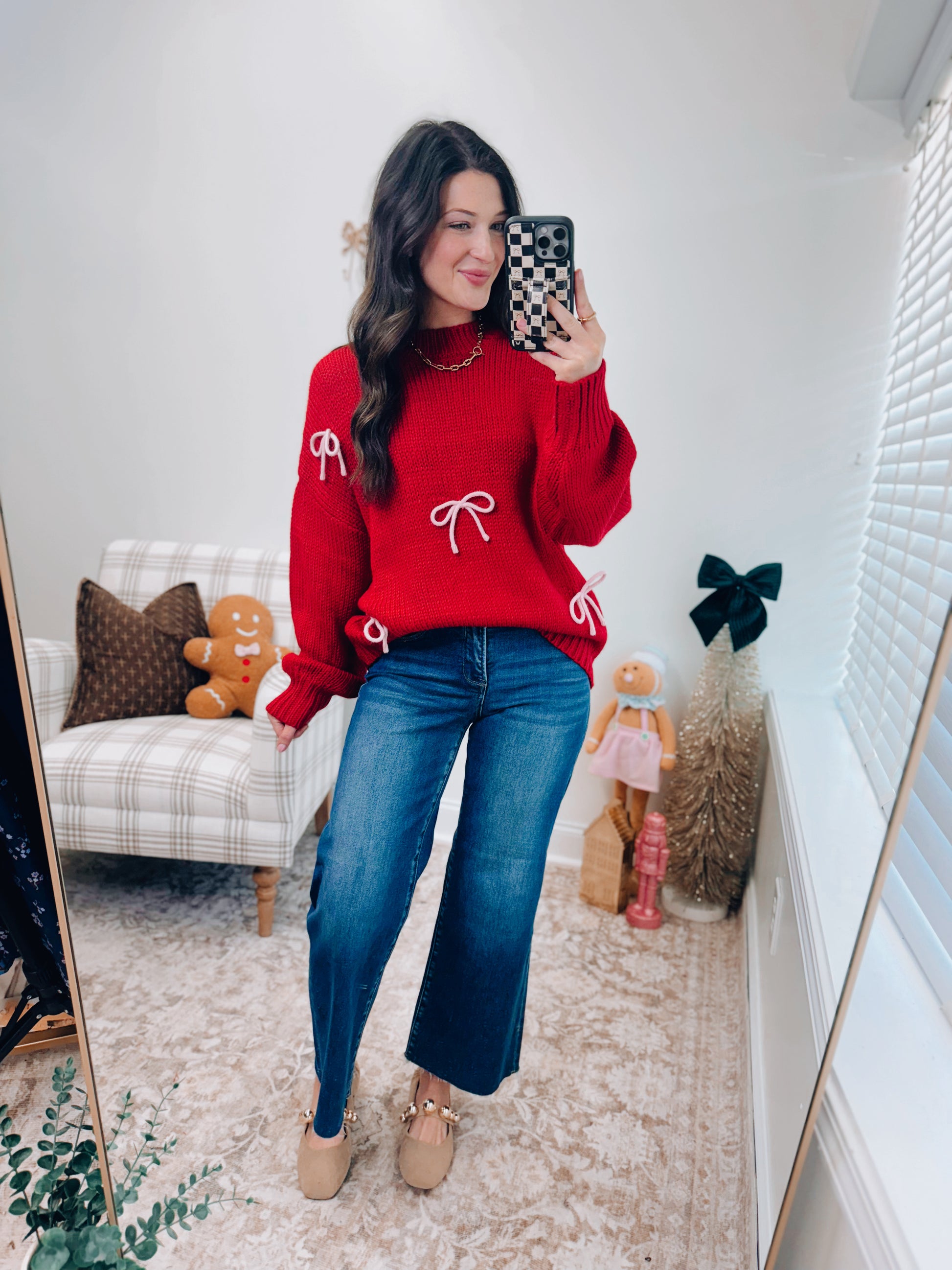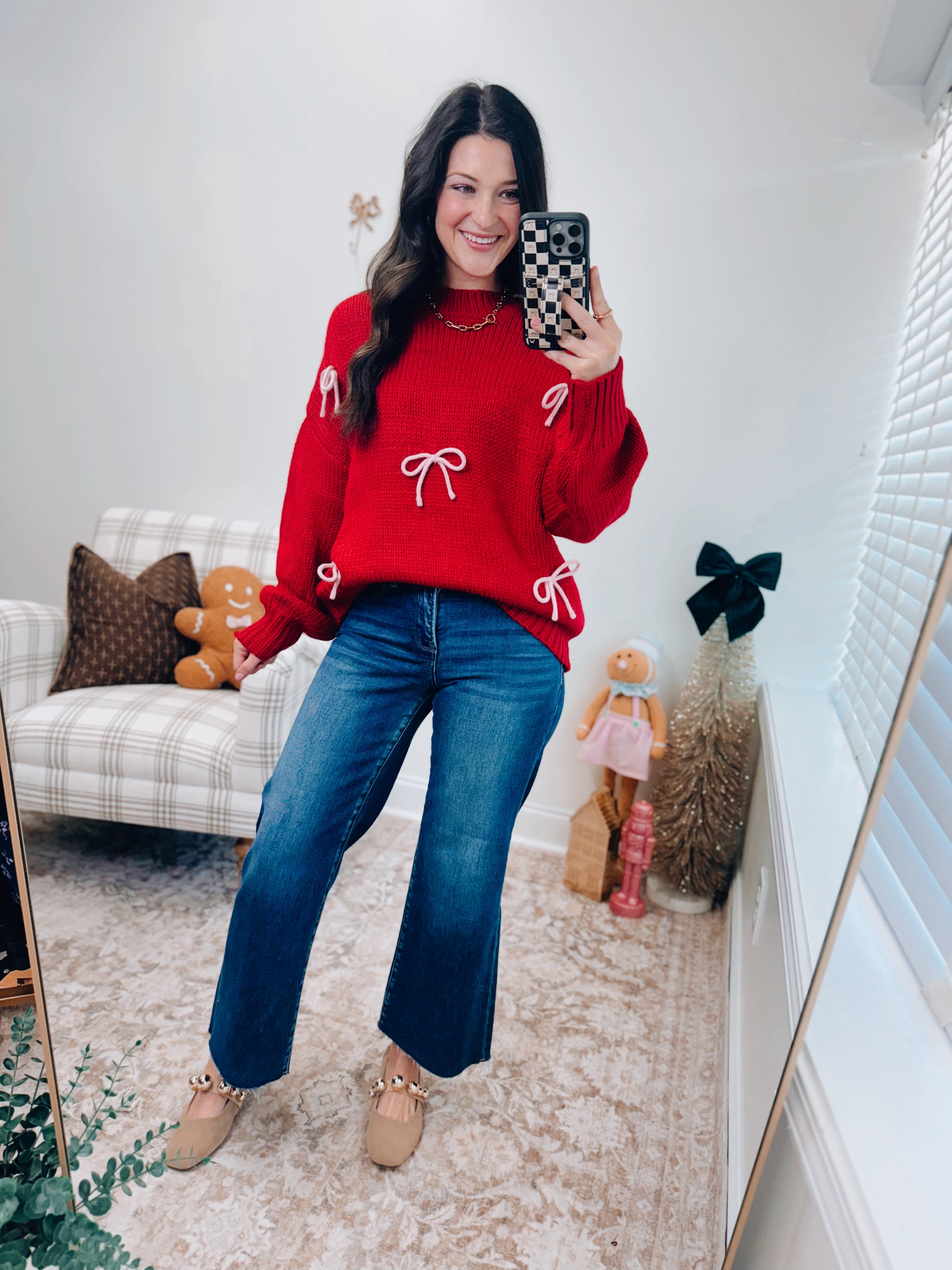 Red & Pink Bow Knit Sweater