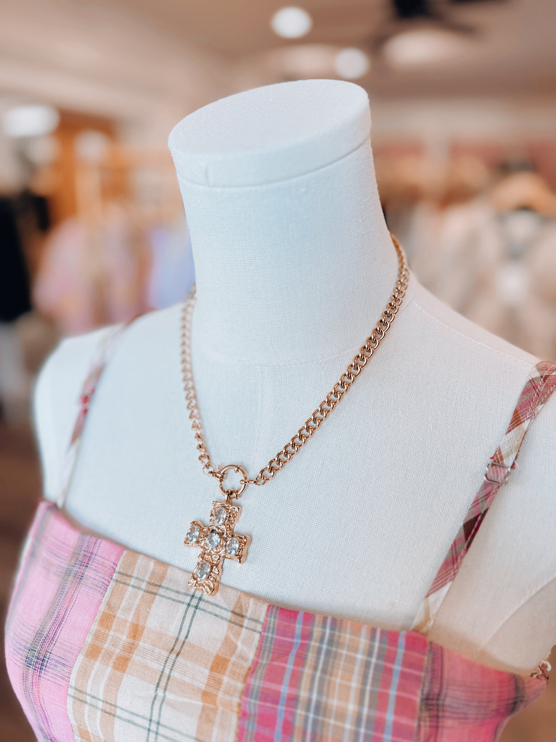 Sloane Chunky Cross 18k Gold Plated Necklace