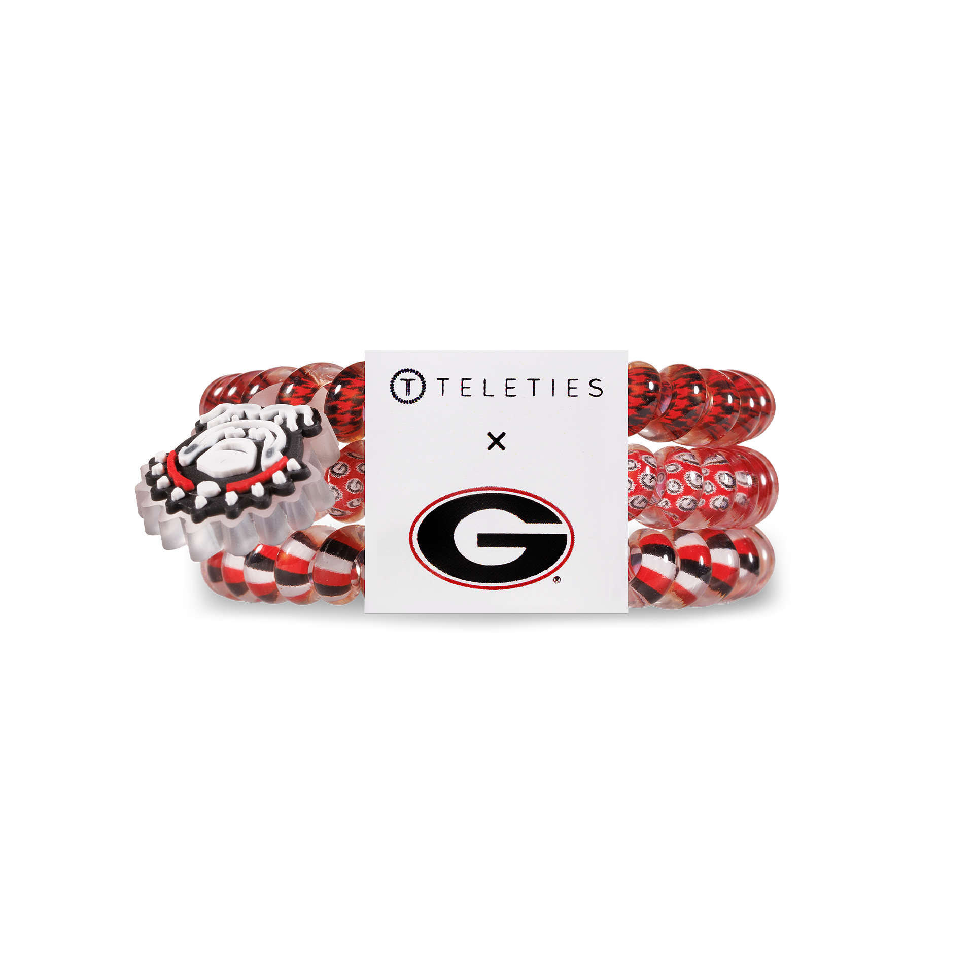 Hold your hair and enhance your collegiate style with the University of Georgia TELETIES. The strong grip, no rip hair tie that doubles as a bracelet. Strong, pretty and stylish, TELETIES are designed to withstand everyday demands while taking your look to the next level. Go Dawgs!